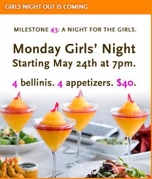 Milestones - 4 bellinis & 4 appetizers for 40$ ~ Girls Night every Monday